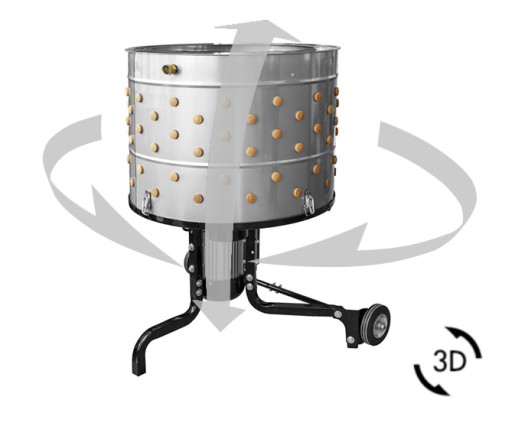- Pojemność bębna na dwie sztuki drobiu max. do 10kg Odpowiedni bęben do skubania gęsi (otwór bębna ø = 500 mm)