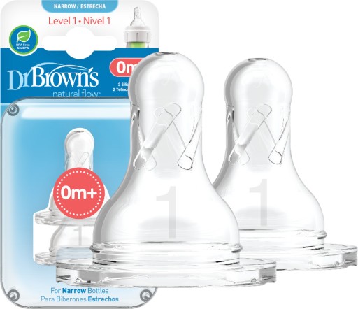 Smoczek Dr Brown′s Poziom 1 zapewnia spójny, naturalny, powolny przepływ. Kształtem przypomina pierś matki.