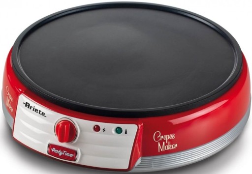 Crepes Maker mod. 202 Partytime w stylu amerykańskich lat 50 to eleganckie i funkcjonalne urządzenie do smażenia naleśników. Moc 1000 W, nieprzywierająca powierzchnia grzejna o średnicy 30 cm, schowek na kabel oraz 2 drewniane szpatułki do rozprowadzania ciasta i przekręcania naleśników