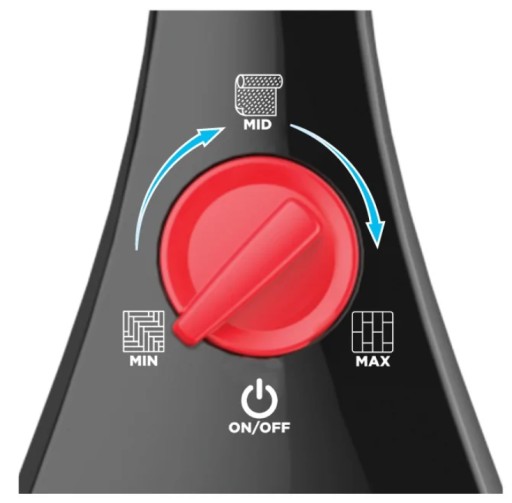 Mop parowy Plus XXL został wyposażony w trzy tryby ustawień pary: do parkietów, dywanów albo płytek.