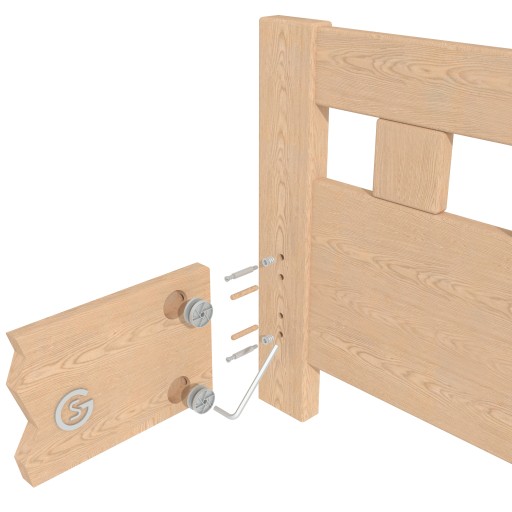 Złącze ECM ø 35 mm z zaczepem z gwintem metrycznym M8, przeznaczone jest do montażu łóżek, szaf, komód czy stołów. System oparty jest na zaczepie z gwintem metrycznym - wkręcanym w szczyt łózka lub nogę drewnianą, w mufę z gwintem metrycznym M8. Od strony listwy bocznej łózka wierci się otwór ø 35 mm (55 mm od krawędzi do środka otworu ø 35 mm.) Następnie za pomocą klucza imbusowego SW-6 mm, skręca się mimośród wraz z zaczepem.