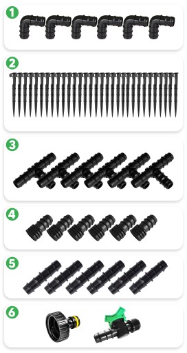 ✅ Najwięcej elementów w zestawie sprawia, że dostosujesz układ swojego nawadniania pod rodzaj Twojej uprawy.