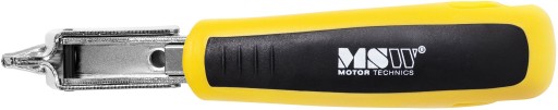 Zszywacz tapicerski młotkowy marki MSW pozwala przytwierdzić skórę, filc, papę, wykładzinę czy różne materiały izolacyjne. Sprzęt wykonany został z hartowanej stali węglowej. Dzięki wysokiej jakości wykonania taker jest niezwykle trwały i wytrzymuje duże obciążenia. Ergonomiczny uchwyt pewnie leży w dłoni. Powłoka z tworzywa sztucznego zapobiega ślizganiu się. Do zszywania używa się płaskich zszywek 6 - 10 mm. W komplecie znajduje się rozszywacz, dzięki któremu wadliwe zszywki można wygodnie wyciągnąć.