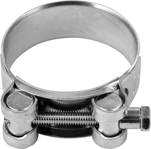 Mocna obejma śrubowa do dużych obciążeń przeznaczona do mocowania przewodów elastycznych, z twardej gumy, zbrojonych tworzywem lub stalą, stosowanych