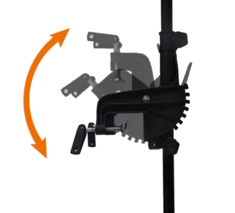 Jest możliwość regulacji o 20 stopni w górę od pozycji poziomej i regulacji do 90 stopni w dół , w sumie 110 stopni. Przesuwając w dół głowicę o 90 stopni, możemy złożyć silnik do wygodnej pozycji transportowej.