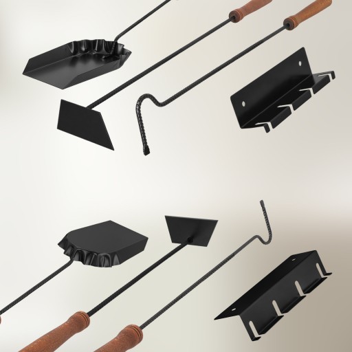 - W zestawie wieszak przykręcany, łopata, wygarniacz i pogrzebacz.