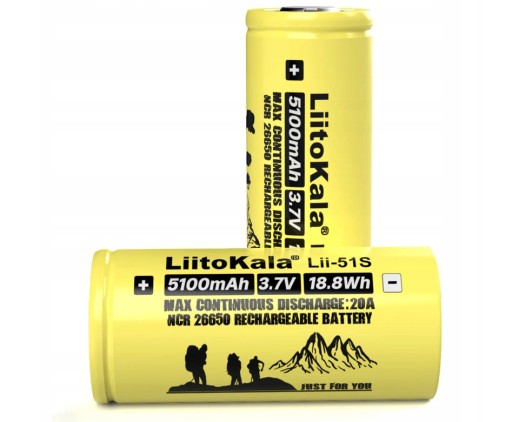 Do zestawu dołączamy mocne markowe ogniwa LiitoKala litowo-jonowe 26650 5100mAh