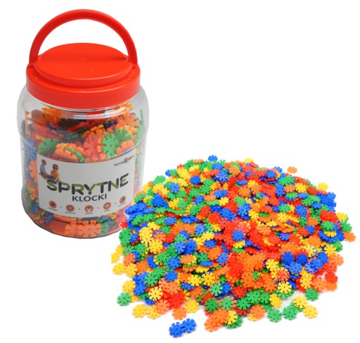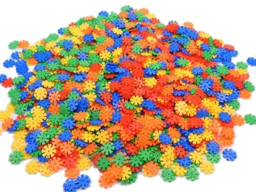 - różnokolorowe klocki w formie płatków śniegu - 500 sztuk o średnicy 2,5 cm