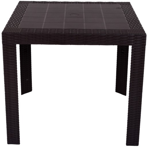 Blat stołu wykonany jest z odlewu polipropylenu w stylistyce technorattanu . Po środku blatu znajduje się praktyczny i przydatny otwór na parasol ogrodowy.