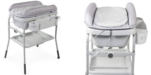 Chicco Cuddle & Bubble to doskonałe rozwiązanie dla każdego rodzica. Połączenie wanny oraz przewijaka, który na lekkim stelażu nakłada się nad wanienką świetnie sprawdza się nawet w małych mieszkaniach. Cała konstrukcja składa się do niewielkich rozmiarów.