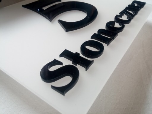 Tabliczka została wykonana z wysokiej jakości szkła akrylowego o łącznej grubości 6mm (3mm podkład + 3mm litery i cyfry).