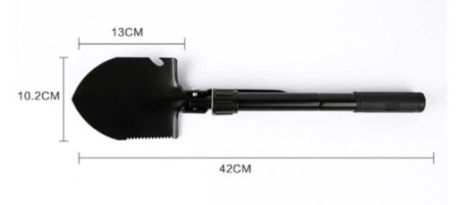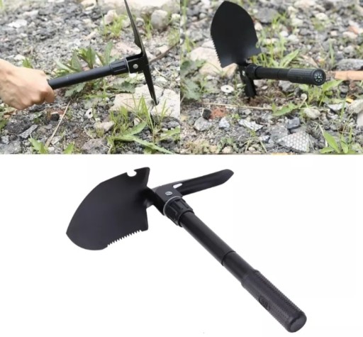 niezbędne w każdym samochodzie, na biwaku, w ogrodzie, w domu i na wędkowaniu. Dzięki możliwości złożenia do niewielkich rozmiarów i pokrowcowi z łatwością schowa się w samochodowym schowku lub torbie na biwak czy na ryby. Może służyć również jako motyka. Gumowa rękojeść sprawi, że narzędzie będzie trzymać się pewnie i nie wyślizgnie się podczas pracy.