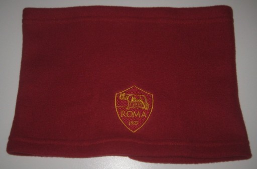 Szalik zimowy typu komin - do nakładania przez głowę - w barwach AS Roma. Produkt oryginalny. Materiał: polar. Nowy. Z Włoch. Cena za 1 szt.