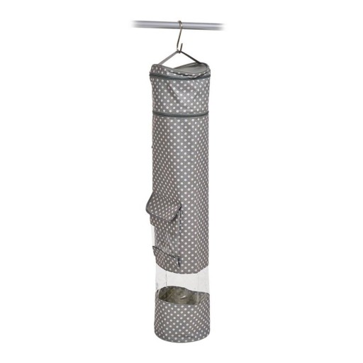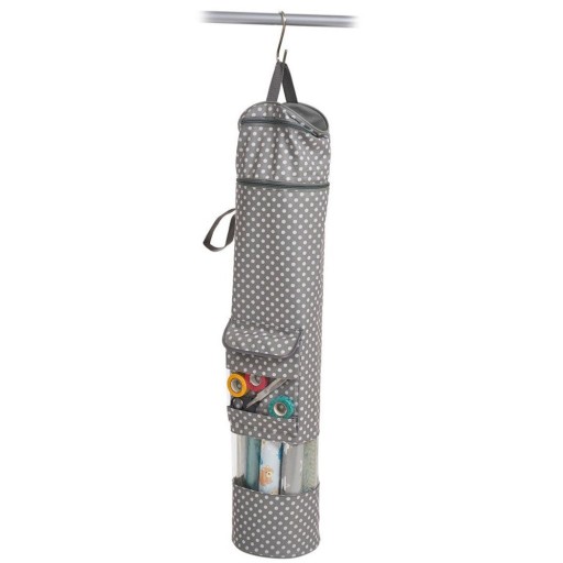 Dekoracyjny organizerświetnie sprawdzi się do przechowywania papierów ozdobnych na prezenty oraz drobnych akcesoriów, jak wstążki, taśmy, nożyczki itp. Forma tuby pozwala pomieścić sporą ilość papierów i zapobiegnie ich pognieceniu oraz zniszczeniu. Boczna kieszonka sprawdzi się na mniejsze rzeczy. Zamki błyskawiczne umożliwią szybki i prosty dostęp a przeźroczyste okienko ułatwi podejrzenie zawartości. Organizer został wyposażony w haczyk umożliwiający zawieszenie go na drzwiach lub wewnątrz szafy na drążku. Ponadto ma dwa uchwyty ułatwiające przenoszenie. Atrakcyjna kolorystyka oraz uroczy nadruk w kropeczki.