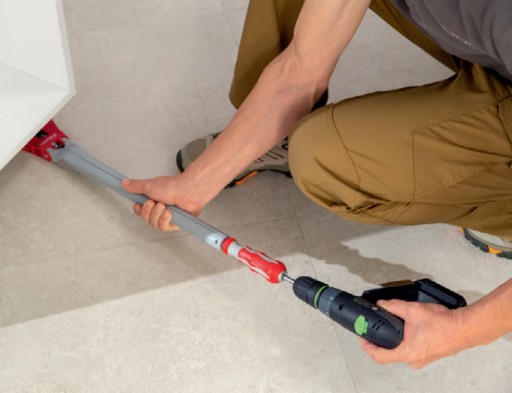 Klucz regulacyjny służy do ergonomicznej i sprawnej regulacji wysokości systemu regulacyjnego do nóżek Axilo w całym obrębie cokołu, np. również przy szafkach narożnych