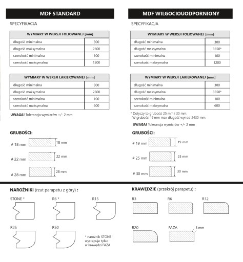 Parapety wewnętrzne - MDF wilgociouodporniony