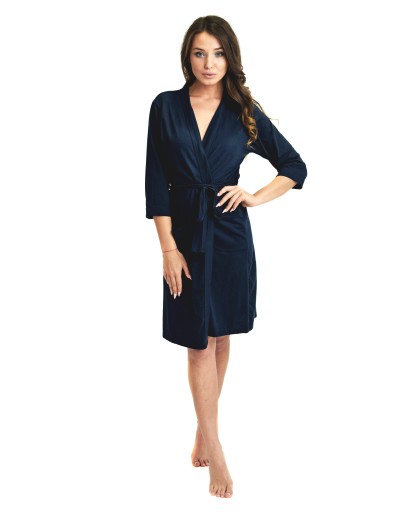 GRANATOWY BAWEŁNIANY SZLAFROK BASIC