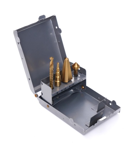 Wysokiej jakości zestaw wierteł uniwersalnych TAGRED wykonano z wytrzymałej stali narzędziowej HSS 4241. W zestawie znajdziecie rozwiertak, pogłębiacz stożkowy, wiertło stopniowe, a także wiertło frezujące. Wiertła są zapakowane w praktycznej metalowej kasetce.