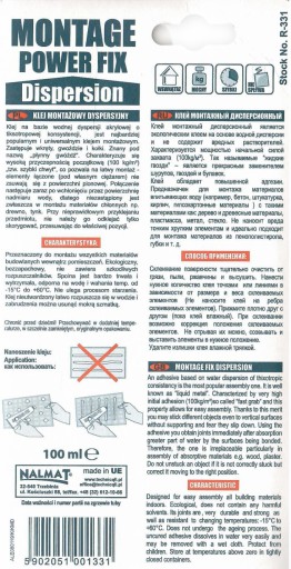 KLEJ MONTAŻOWY DYSPERSYJNY - R-331 - 100ml