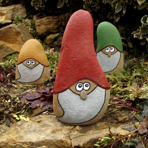 Krasnale wykonane są z naturalnego kamienia, piaskowca magurskiego. Figurki są trwałe i odporne na warunki atmosferyczne, malowane są ręcznie a kolory są stonowane nie jaskrawe, powłoka półmatowa. Kształt uformowanych przez naturę kamieni sprawia że każdy krasnal jest inny , niepowtarzalny. Wysokość od 15 do 20cm(na zdjęciach to te wyższe, na innej naszej ofercie są dostępne niższe od 11cm do 15cm) Waga krasnala to od 2kg do 3kg. Do wyboru krasnale w trzech kolorach czapeczek; zielony, bordowy, beżowy.