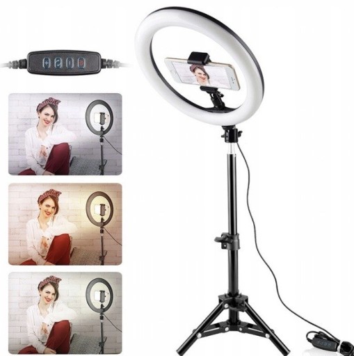 DUŻA LAMPA PIERŚCIENIOWA RING LED o WIELKOŚCI 32cm + STATYW REGULOWANY do 220cm