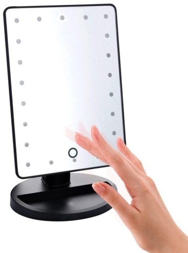 Podświetlane lusterko z 22 diodami LED uruchamianymi dotykowym przyciskiem na lusterku.