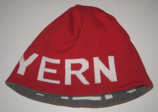 Zimowa czapka dwustronna w barwach Bayern Monachium. Używana. Stan jak na zdjęciach. Z Niemiec. Cena za 1 szt.
