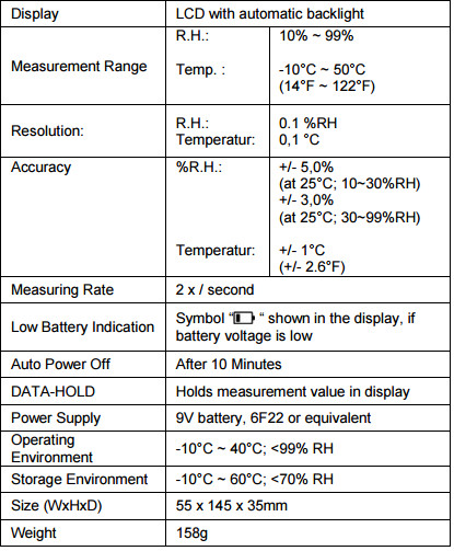 Miernik temperatury i wilgotności -10/+50*C, 10-99%