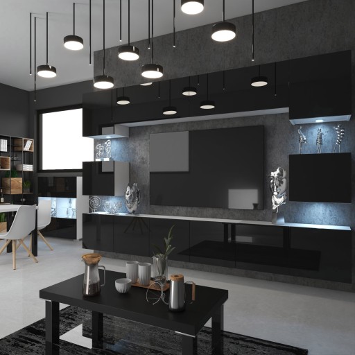 - Uwaga!!! Cena zestawu nie uwzględnia oświetlenia LED, telewizora oraz wyposażenia dekoracyjnego mebla