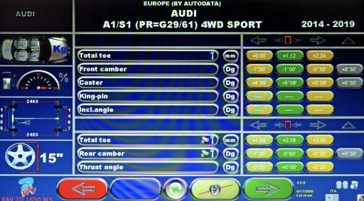 Oprogramowanie pracuje w środowisku Windows, posiada bazę danych (90.000 pojazdów) z możliwością wprowadzania własnych danych. Obsługa oprogramowania jest intuicyjna i prosta (menu wj.polskim - program RAV Aligner), wyniki wyświetlane w 3D.