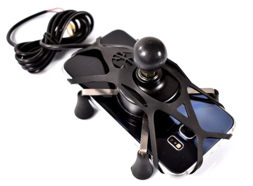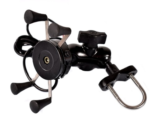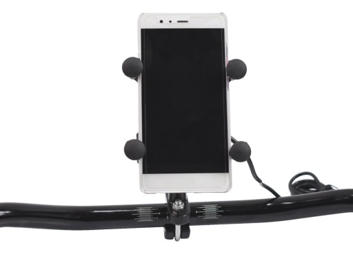 Uchwyt posiada gniazdo USB do którego możesz podłączyć ładowarkę by podładować telefon w trakcie jazdy.