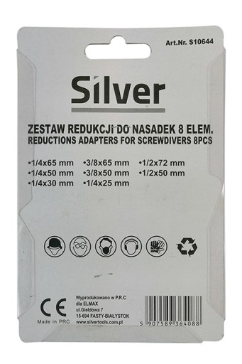 REDUKCJE ADAPTERY DO WKRĘTARKI NASADEK 1/4" 3/8" 1/2" 8el.