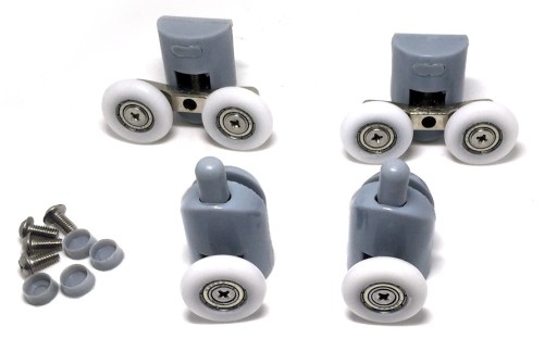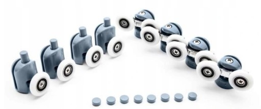 - Uniwersalność – rolki zostały wykonane z tworzywa sztucznego, nylonu oraz stali odpornej na korozję. Pasują do wszystkich kabin prysznicowych w których zastosowano tego typu łożyska kulkowe. Rolki wraz z kółkami dopasowują się do kształtu prowadnicy.
