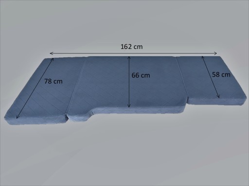 W najszerszym miejscu od strony pasażera 78cm środek 66cm a w najwęższym od strony kierowcy gdzie można rozłożyć oraz złożyć materac bez konieczności wysiadania z auta 58cm długość całkowita 162cm.