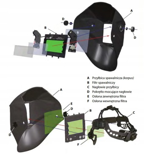 Instrukcja obsługi w języku polskim całej przyłbicy SPARTUS PRO 401X oraz wszystkich możliwych funkcji