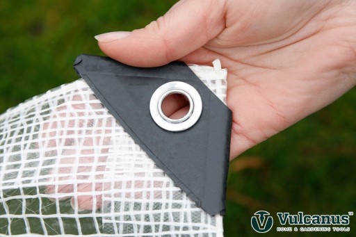 Plandeka posiada dodatkowe wzmocnienia w narożnikach, dzięki czemu całość jest wytrzymała i odporna na rozdarcia.