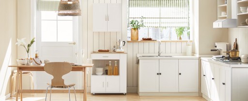 Ten praktyczny wózek kuchenny wyposażony jest w zamkniętą szufladę, wyjmowany kosz, półkę na trzy butelki oraz otwartą półkę boczną, na której można przechowywać wiele przyborów kuchennych.