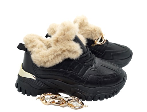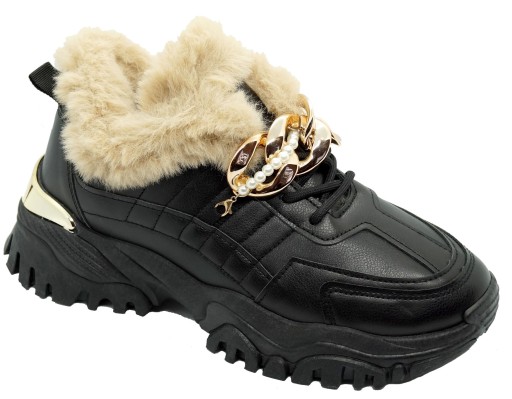 БОТИНКИ СПОРТИВНЫЕ ЖЕНСКИЕ ЗИМНИЕ, ЦЕПЬ, ЧЕРНЫЕ, R40