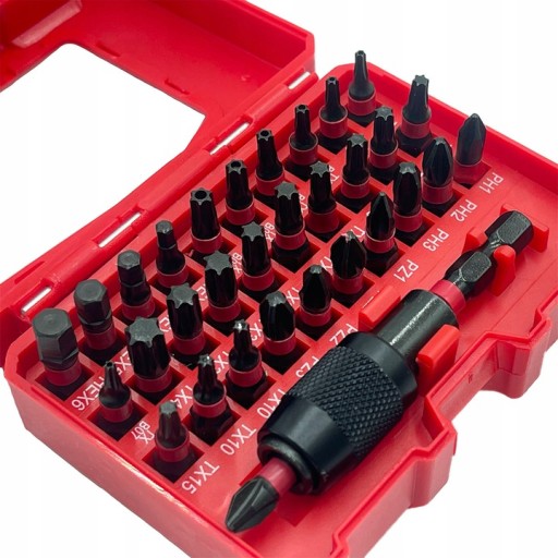 31 szt. bitów udarowych o długości 25 mm + uchwyt na bity samozaciskowy 1/4 HEX 73mm długości