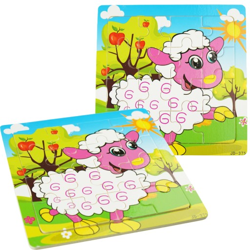DREWNIANA KOLOROWA UKŁADANKA PUZZLE BARANEK