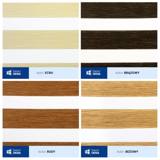 Naprzemienne pasy materiałów zaciemniających i przezroczystych pozwalają na dowolną regulację światła w pomieszczeniu.
