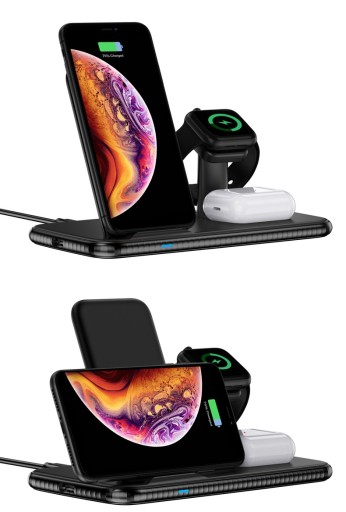 Najnowsza technologia pozwala na jednoczesne szybkie i bezpieczne ładowanie jednocześnie 3 urządzeń, np. telefon komórkowy iPhone, zegarek Apple Watch oraz słuchawki AirPods