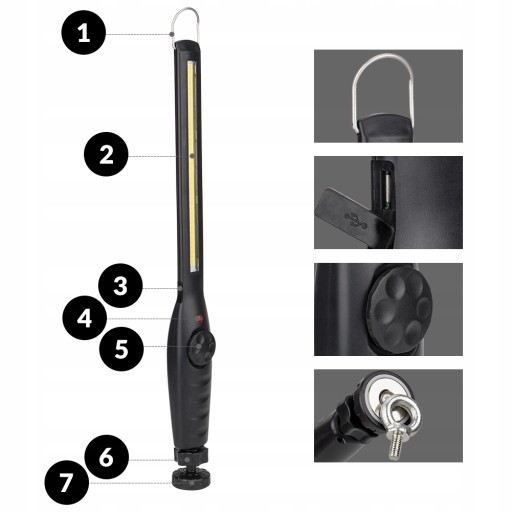 - wbudowany magnes dający możliwość przyczepienia lampy do metalowych elementów;