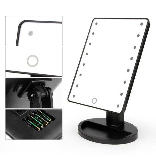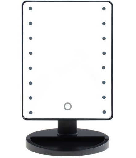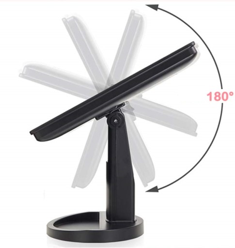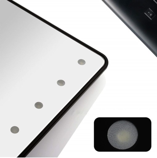 Lusterko kosmetyczne posiada szeroką i stabilną podstawę, dzięki czemu nie ma ryzyka, że się przewróci, nawet przy maksymalnym kącie nachylenia tafli lustra. Podświetlane lusterko kosmetyczne uruchamiane jest za pomocą przełącznika ON/OFF, który znajduje się w tylnej części obudowy. Intensywność świecenia diod można natomiast regulować za pomocą przycisku, który umieszczony jest w dolnej części lusterka kosmetycznego – wystarczy przytrzymać przycisk chwilę dłużej i poziom oświetlenia zmieni się płynnie na bardziej lub mniej intensywny.