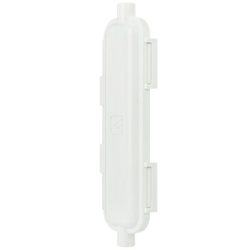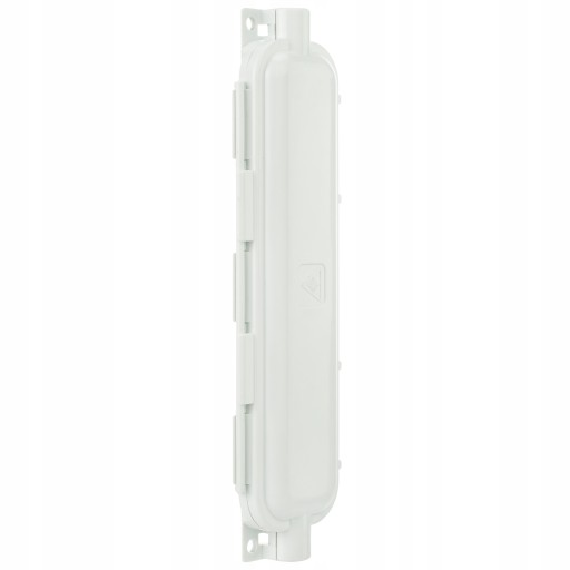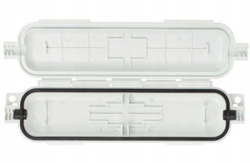 W środku wyjmowana gumowa uszczelka zapewniająca szczelność. Mufka zamykana na dwa zatrzaski - nie są potrzebne narzędzia. Możliwość montażu naściennego dzięki dwóm otworom umieszczonym po obu końcach mufki.