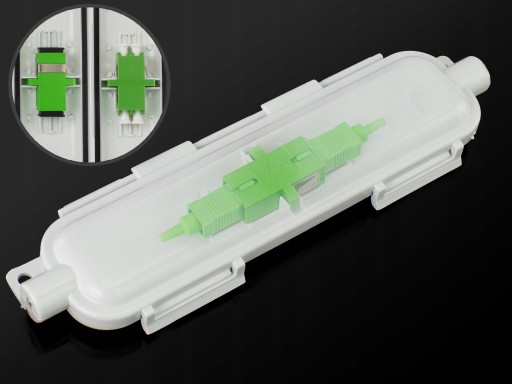 Mini-mufa dedykowana do montażu jednego adaptera typu SC Simplex/LC Duplex. Całość wykonana z tworzywa sztucznego odpornego na promieniowanie UV, charakteryzującego się wysoką udarnością oraz niską ścieralnością.