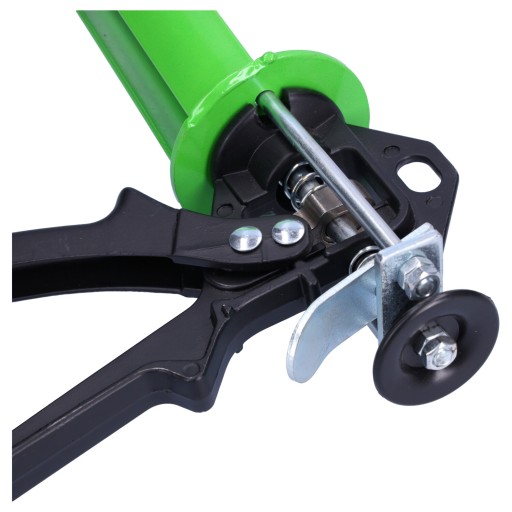 Solidny, profesjonalny pistolet do mas plastycznych. Korpus wykonany z blachy stalowej malowanej proszkowo. Jego konstrukcja jest trwała i solidna, dodatkowo została wzmocniona o przetłoczenie wzdłużne. Profilowany chwyt wykonany ze stopu aluminium zapewni wygodną ergonomiczną pracę.
