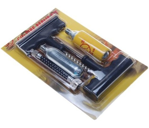 UWAGA! MOŻLIWE, ŻE BĘDZIE POTRZEBNA WIĘCEJ NIŻ JEDNA BUTLA Z CO2 DO PEŁNEGO NAPOMPOWANIA NAPRAWIANEJ OPONY