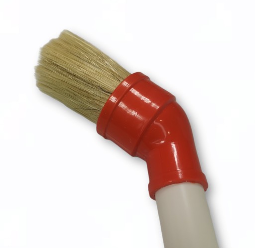 Włosie gęste, szczecina. Przez swoją zakrzywioną główkę, idealnie sprawdzi się przy czyszczeniu felg. Szczególnie w miejscach trudno dla zwykłych pędzelków. Również we wszelkiego rodzaju rynienkach odprowadzających wodę z auta oraz innych ciężko dostępnych zakamarkach. Naturalne włosie w porównaniu do sztucznego świetnie rozprowadza chemię czyszczącą.