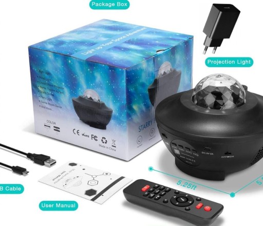 Nasz zestaw projektora gwiazd to najbardziej rozbudowany zestaw na rynku, dodaliśmy kompatybilny adapter oraz instrukcję obsługi w języku polskim - tych dwóch rzeczy nie posiada zwykła wersja fabryczna, co wyróżnia go na tle innych. Dodatkowo posiada zdecydowanie lepszą jakość i różnorodność wyświetlanych projekcji dzięki najwyższej jakości wykonania. Urządzenie może emitować aż 10 efektów świetlnych!